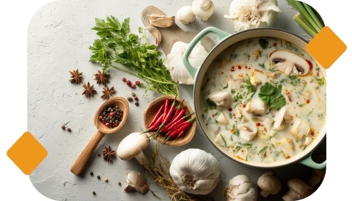 A bold Thai classic made with tender chicken, lemongrass, kaffir lime, and chili — spicy, sour, and irresistibly fragrant.